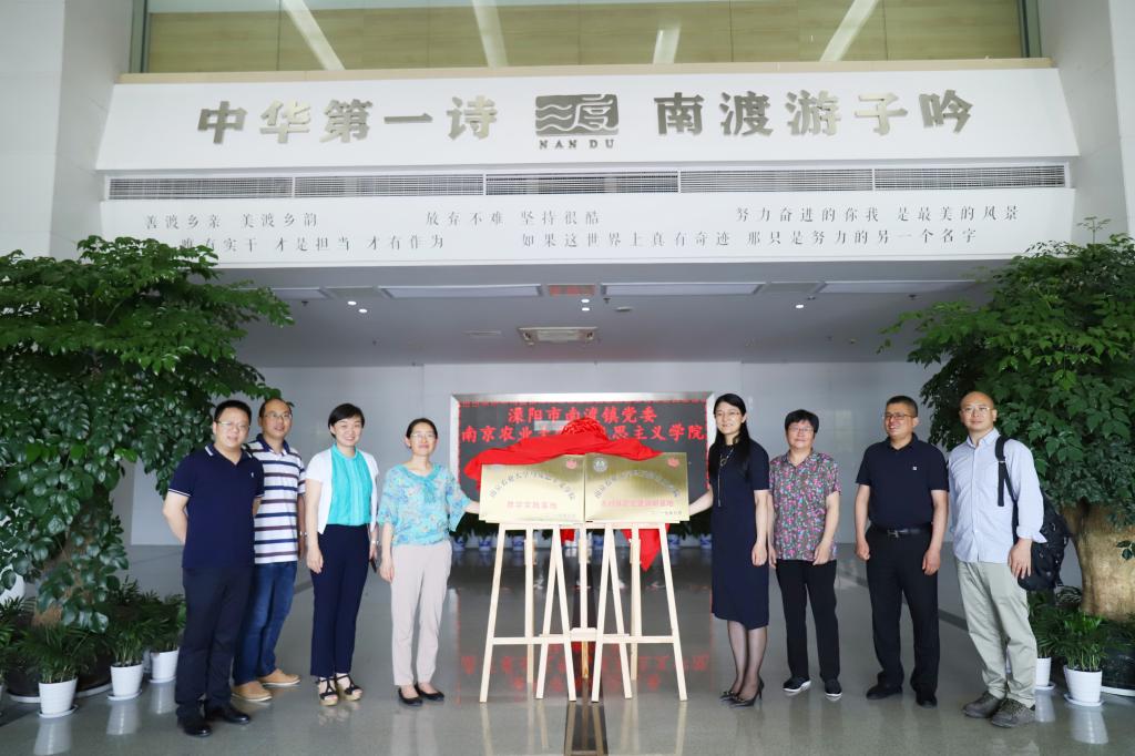 6月5日,18porn 一行赴溧阳市南渡镇开展揭牌及调研活动。学院党总支副书记杨博,副院长姜萍,中国近现代史教研室主任刘俊,道德与思想法律基础教研室主任缪方明,《江苏农村基层党建研究报告(2019)》课题组杨珉、杜何琪以及学院党务秘书巩欢、教务秘书李青等师生参加。
