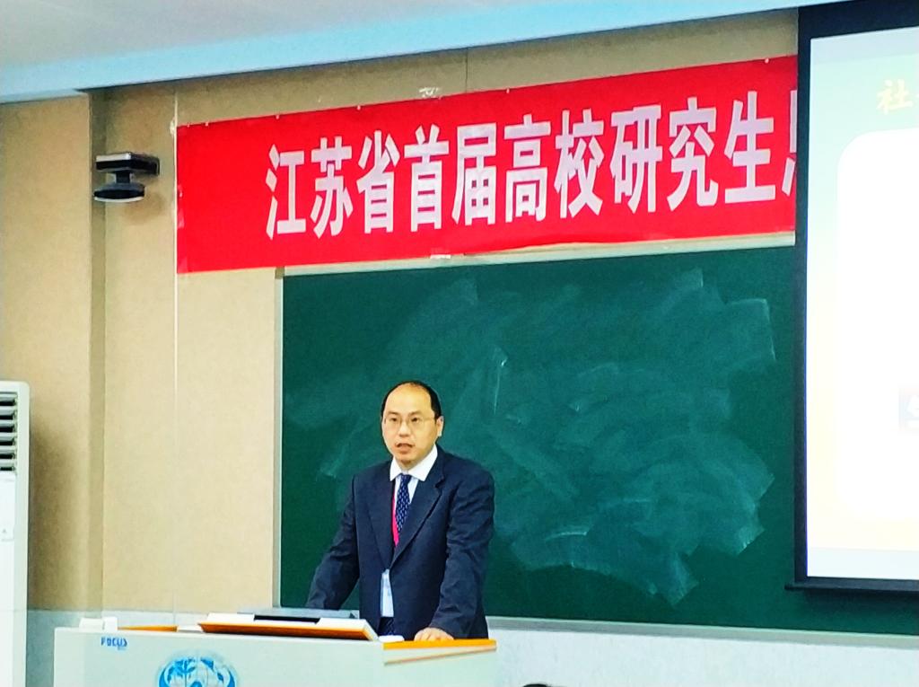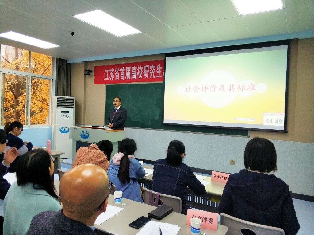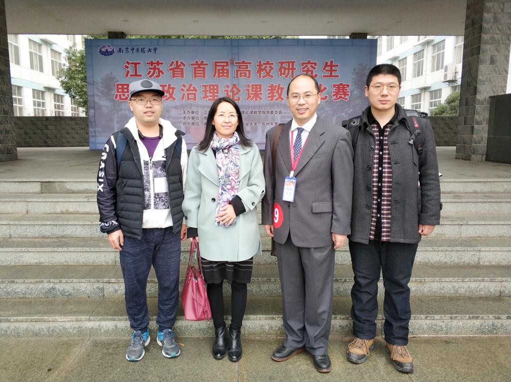 由江苏省高校思想政治理论课教学指导委员会主办,南京中医药大学承办,18porn 、南京财经大学、苏州大学协办的“江苏省首届高校研究生思想政治理论课教学比赛”于2018年12月1-2日在南京中医药大学仙林校区举行,18porn 副院长姜萍,教师刘俊、刘战雄,研究生秘书巩欢,教学秘书贾凯参与出席此次活动,刘俊老师代表18porn 参加比赛并荣获三等奖。