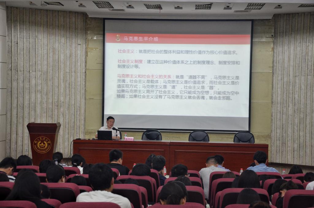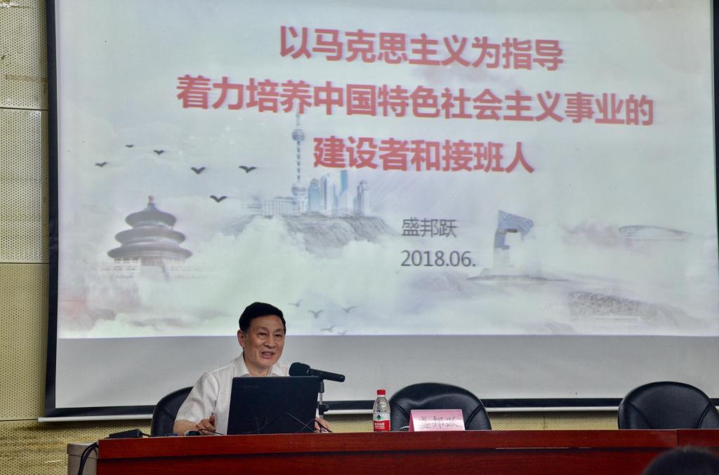 为深入学习习近平总书记在纪念马克思诞辰200周年大会上的重要讲话精神,持续将学习贯彻习近平新时代中国特色社会主义思想引向深入,6月6日下午,校党委副书记、纪委书记盛邦跃教授在图书馆报告厅给我校师生作了“以马克思主义为指导,着力培养中国特色社会主义事业的建设者和接班人”的专题讲座。18porn 党总支书记、院长余林媛、副院长姜萍、思政课教师代表、学院副书记代表以及人文学院大一学生参加了讲座。讲座由18porn 党总支副书记倪丹梅主持。