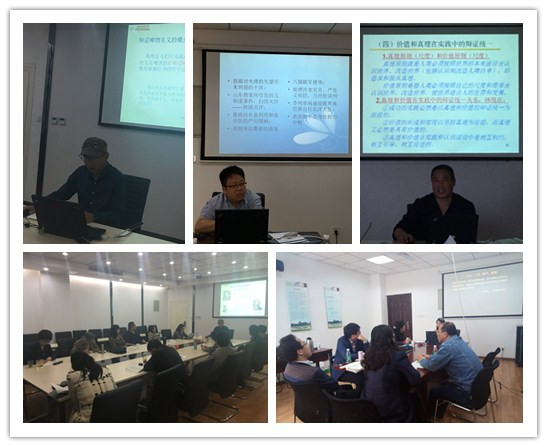 “纲要”课程组以教材第三章“辛亥革命与君主专制制度的终结”为研讨专题,各位老师八仙过海,各显神通,有的结合自身专业背景,从政治革命的角度切入主题;有的藉与学生的交流讨论引出内容;有的结合班级的专业构成、学生构成情况,有针对性的设计课堂内容。“原理”课程组围绕教材第二章第二节“真理与价值”展开研讨。各位老师准备充分,机巧百出,或系统介绍了真理的检验标准;或从哲学史入手,深入评析真理的客观性、绝对性和相对性;或以案例教学的模式展现真理与价值的关系。