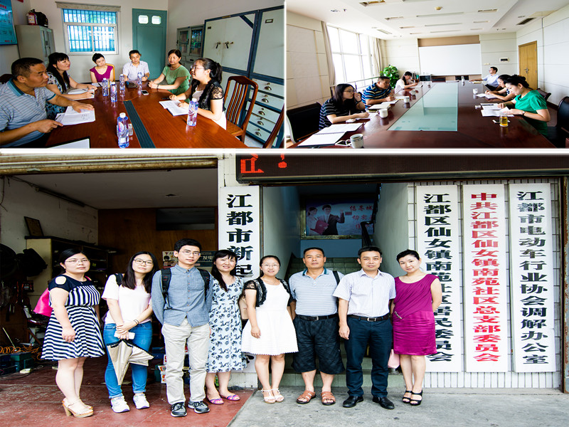 8月6日上午在江都区相关领导陪同下,课题组深入社区和大学生村官创业点进行实地考察。调研人员参观并访谈了仙女镇南苑社区江苏省“最美大学毕业生”李庚书记、南吴大学生村官王娜以及大学生村官抱团创业项目“仙女广告传媒公司”的主要负责人。