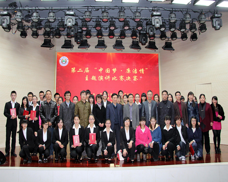 廉如微雨,滋润生机;廉如清茶,褪尽浮华。11月26日下午,第二届“中国梦 廉洁情”主题演讲比赛决赛在校大学生活动中心举行。本次大赛由思政部联合校纪委、校团委共同主办。江苏省教育纪工委副书记、省教育厅监察室主任荆和平,我校党委副书记、纪委书记盛邦跃,校纪委副书记、监察处处长尤树林,思想政治理论课教研部党总支书记、主任余林媛,校党委宣传部部长、团委书记夏镇波,学生工作处副处长刘亮,研究生工作部副部长姚志友出席比赛。来自学校9个学院的 12个选手团队进行角逐,最后决出一等奖1名、二等奖4名和三等奖7名。选手们围绕主题,用饱满的激情、铿锵的语言诠释了当代大学生对建设廉洁文化与实现中国梦的认识和理解,或讴歌勤廉为民的典范,或鞭笞贪污腐败等社会丑恶现象,或阐述对廉洁文化建设的思考和建言,不时赢得台下阵阵热烈的掌声。葛笑如老师、吴国清老师、王燕老师和朱明老师对选手们的演讲进行了精彩而独到的点评。现场300余名师生观赏了比赛。