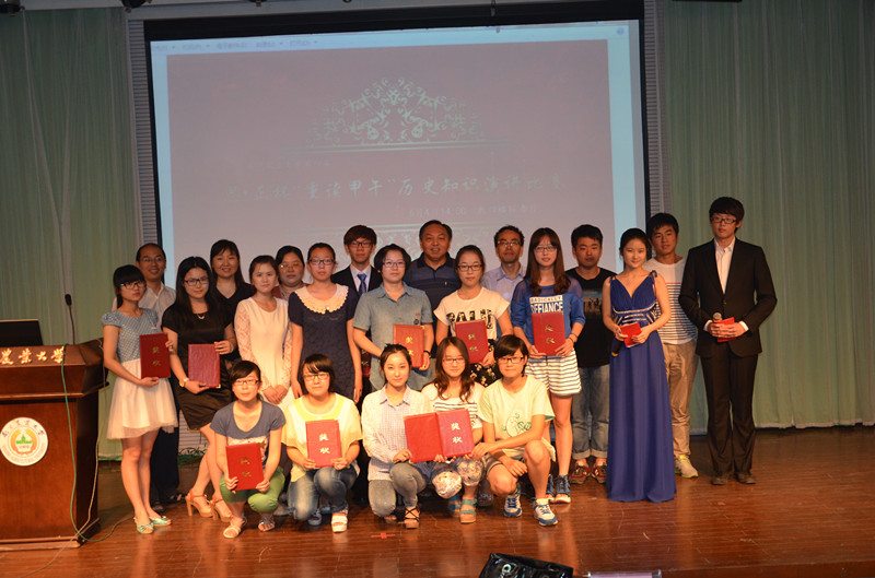 比赛开始阶段,各个选手从不同的角度对甲午中日战争进行反思。有的从甲午战争对中国国运的影响入手;有的从战略战术上分析了中日甲午战争失败的原因;有的则从全局解读从甲午战争到2014年中国三个甲午年的进步与发展;有的则结合视频生动讲解中日甲午战争。总的来说,本次辩论赛参赛选手凭借扎实的历史知识功底,激情澎湃地对甲午中日战争进行演讲,使本次演讲比赛在生动活泼的氛围中圆满落下帷幕。