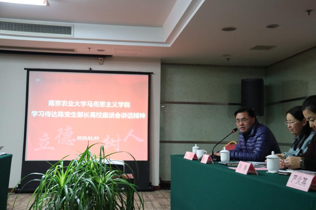 1月3日下午2点,18porn 在翰院宾馆六楼会议室开展学习传达陈宝生部长高校座谈会讲话精神会议,18porn 人文社科处副处长卢勇、南京师范大学哲学系主任曹孟勤应邀出席此次会议。会议由18porn 党总支书记、院长付坚强主持。