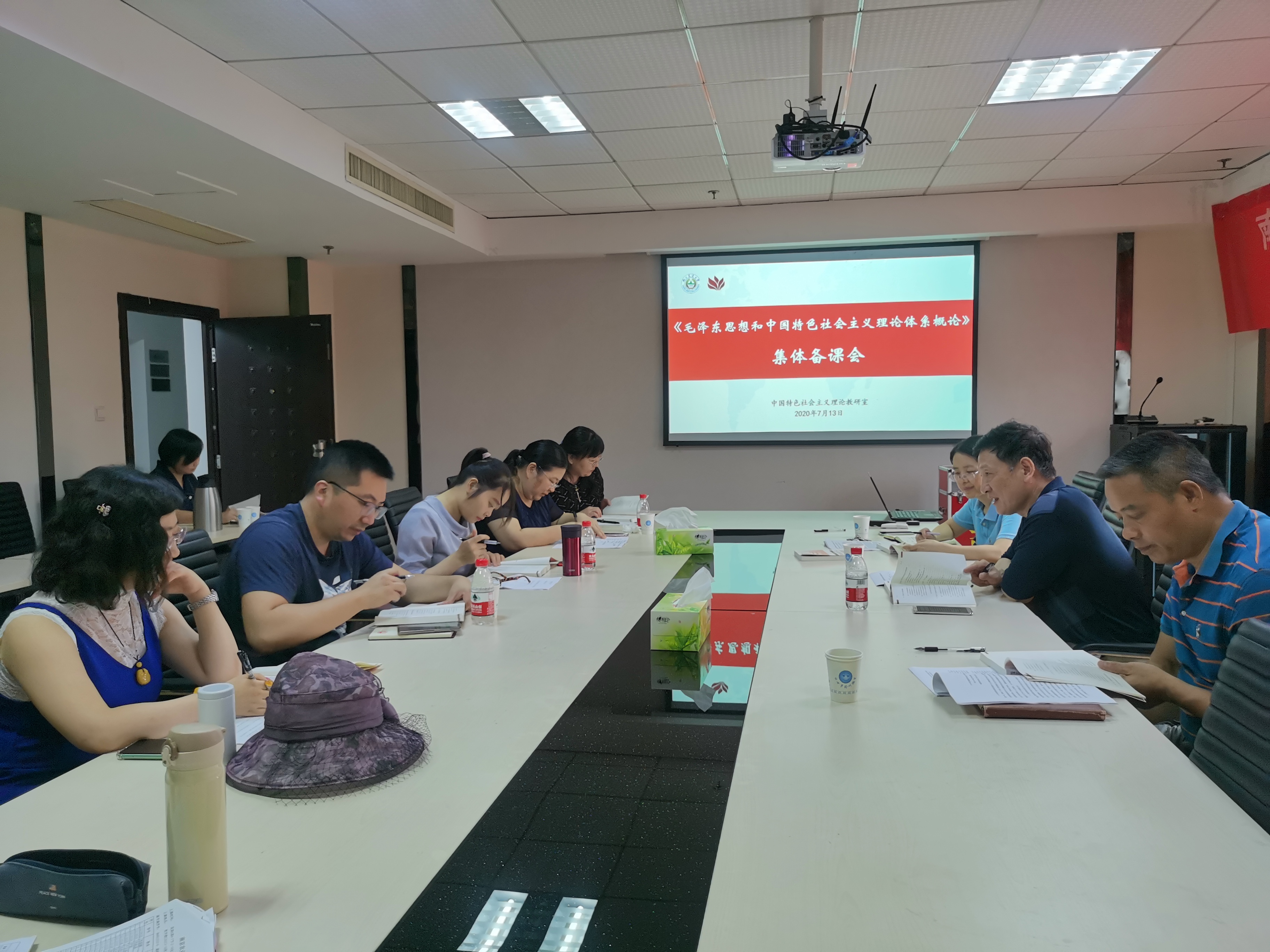 2020年7月13日上午,“毛泽东思想和中国特色社会主义理论体系概论”(以下简称“概论”)课程组在学院会议室召开集体备课会,学院姜萍副院长莅临指导。