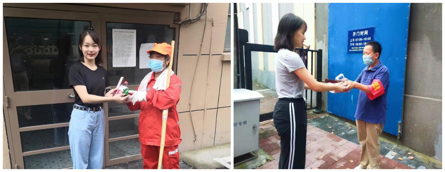 一把折扇、一块毛巾、一瓶风油精、一盒龙虎人丹、一瓶冰矿泉水……看到社区工作人员在酷暑下坚守在疫情防控的岗位上,2019级马克思主义基本原理专业的研究生党员刘蓓用兼职薪酬为社区值守、消杀保洁的工人们购置并递送了“夏日清凉包”,表达了对他们辛勤付出的敬佩与感谢,此项举动受到了社区和物业的一致好评。“夏日清凉包”平凡而普通,但从这份平凡普通中映射出南农马院青年党员对社会的人文关怀。