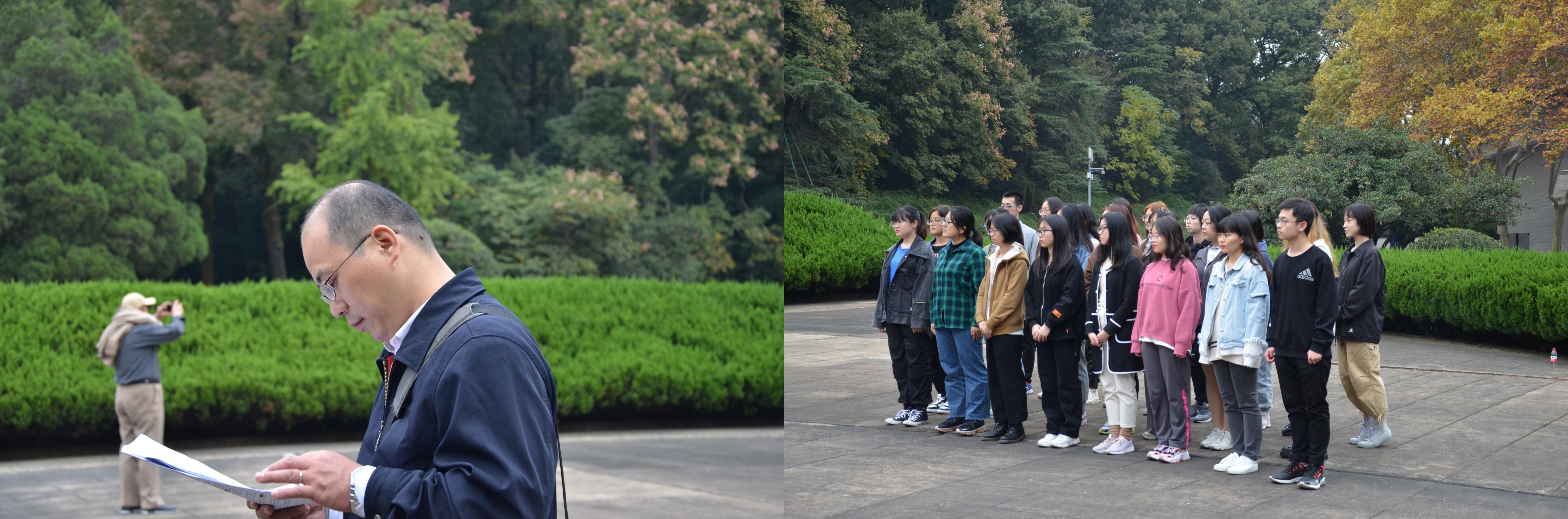 金秋十月,辽阔高天,当忆先烈往事,领悟伟人精神。10月28日下午,18porn 中国近现代史纲要教研室主任刘俊老师带领我校本科生在中山陵博爱牌坊前开展了一堂别开生面的中国近现代史纲要现场教学课。