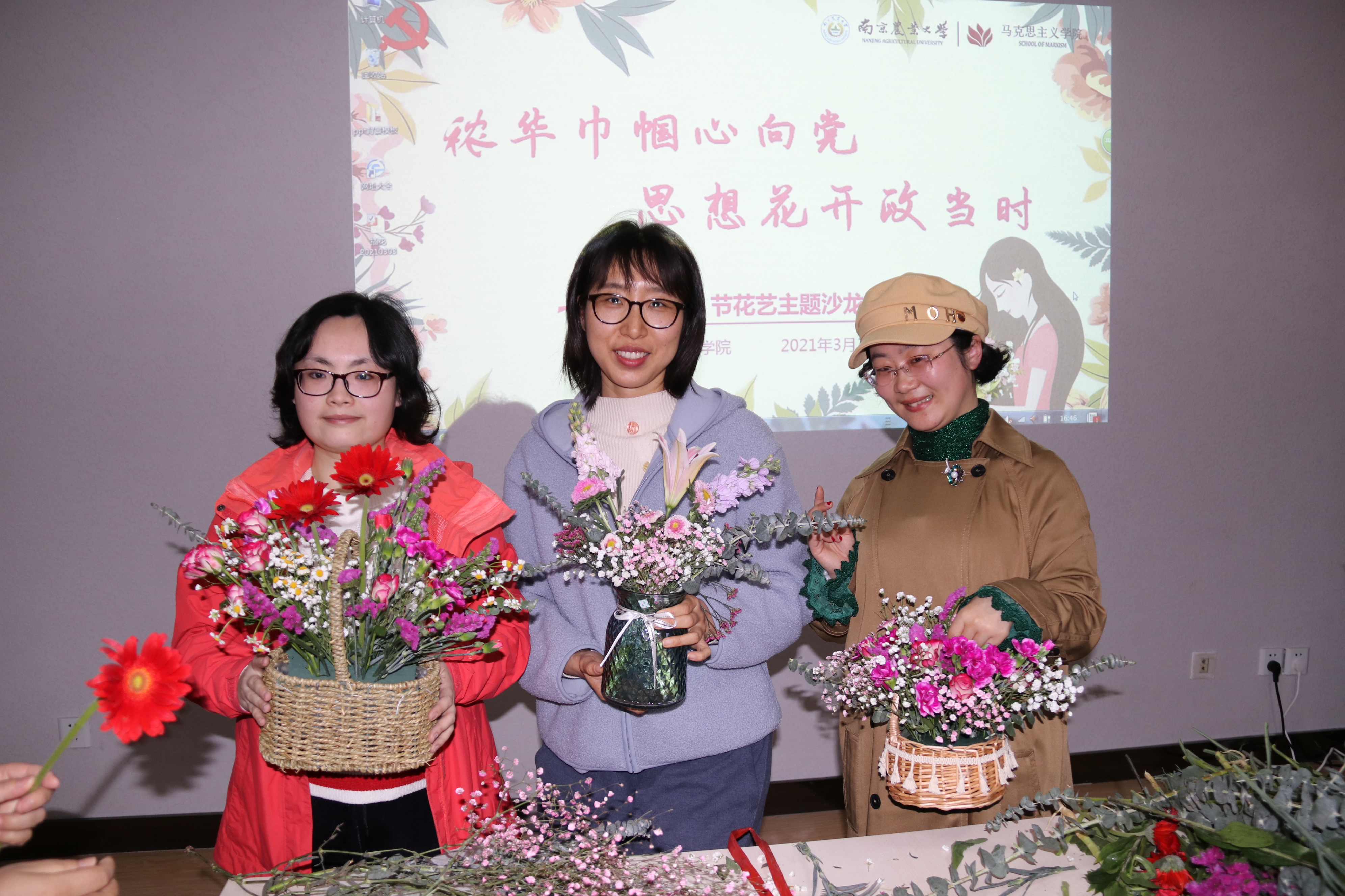 鲜花盛放赞华年,艺景入画“思”意浓。花艺作品,诠释一种热爱生活的态度,也展现了马院女教师们的自信、阳光和向上的风采。“秾华巾帼心向党,思想花开政当时”,献礼祖国,秾华巾帼们祝福党的百年华诞,在俯身教育、思想育人中绽放英姿。