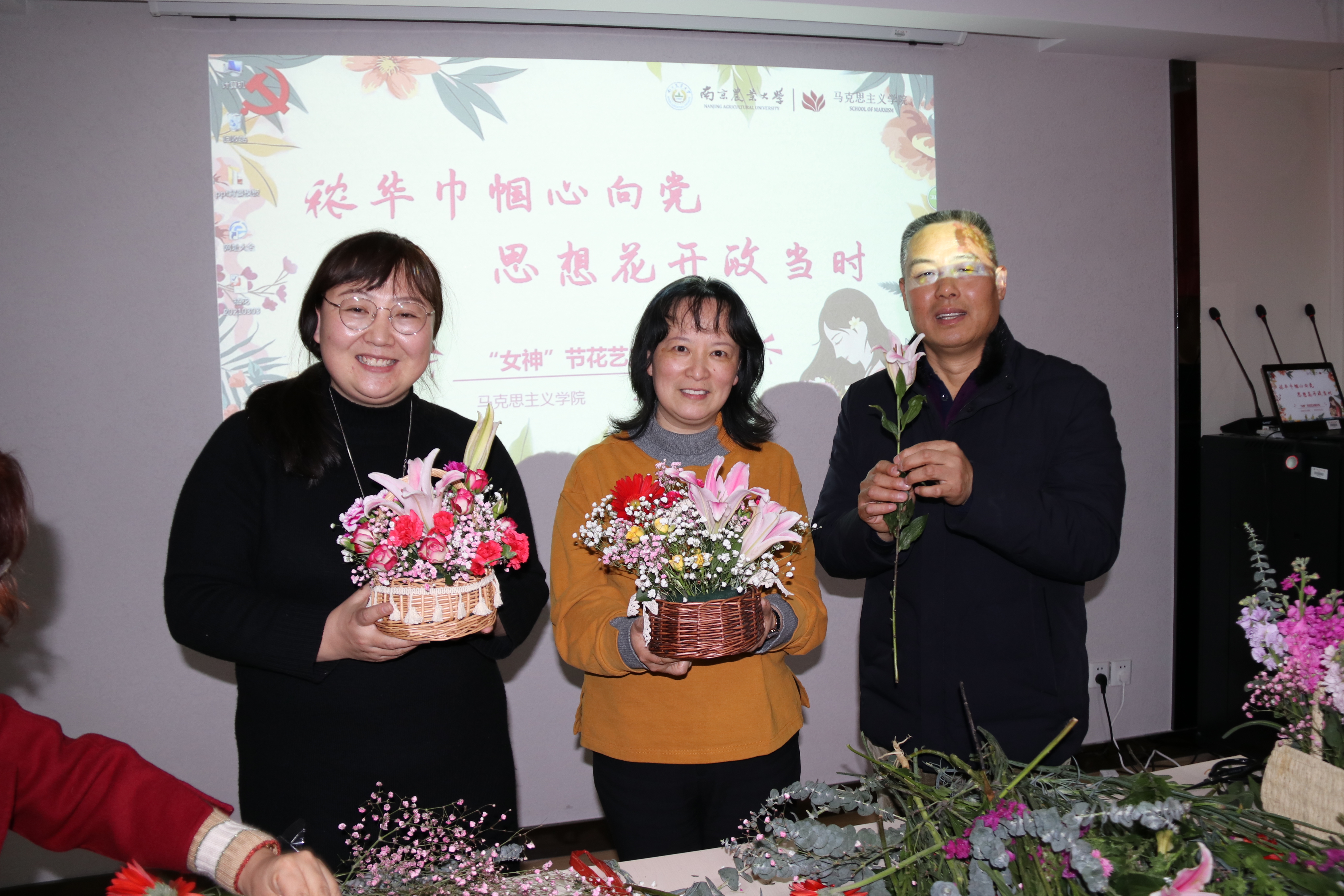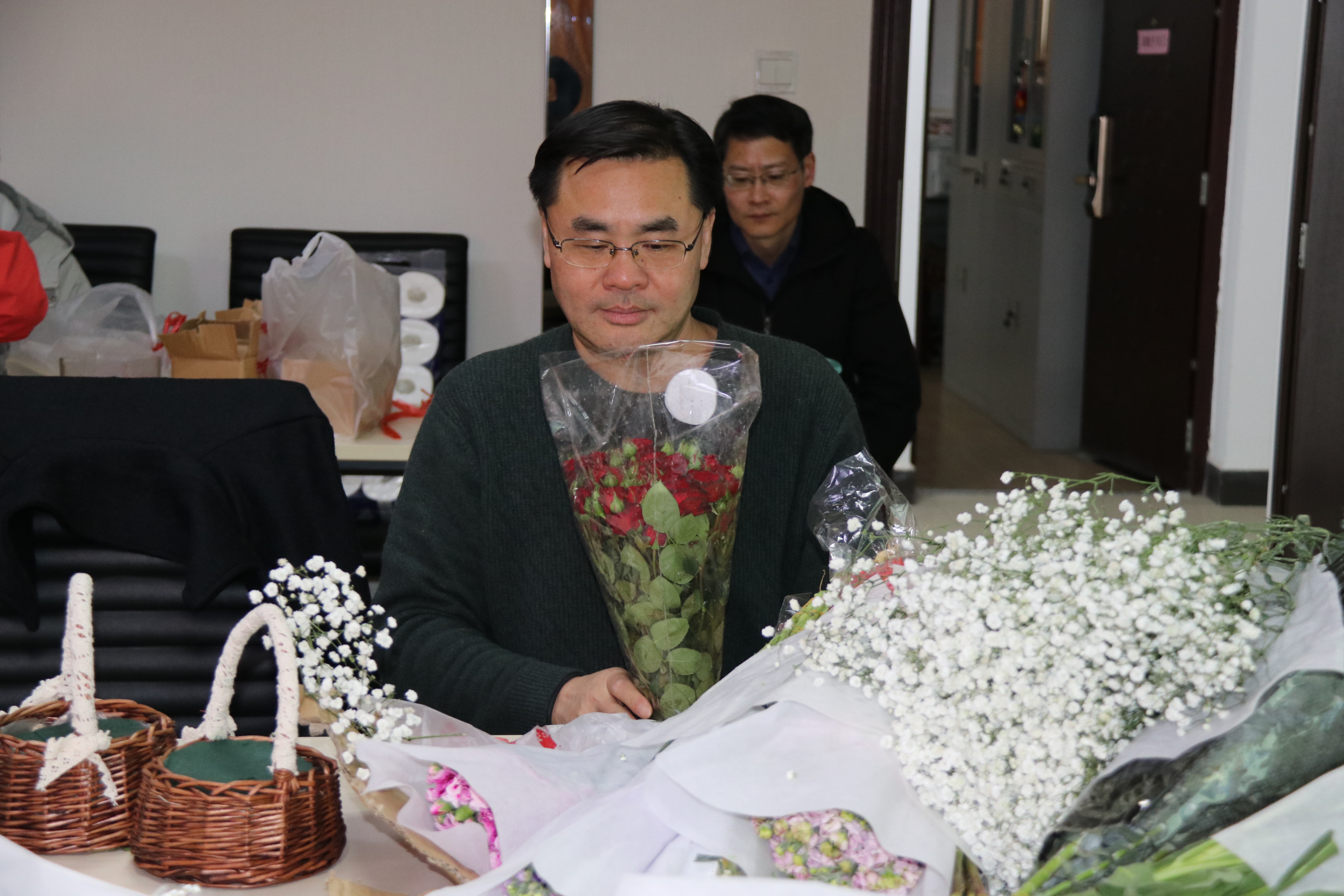都说3月8日也是“女神节”,院长付坚强、党总支副书记屈勇亲临沙龙现场,为马院“女神”教师们送上最真挚的祝福,学院工会主席吴国清等“男神”们甘当“绿叶”,也纷纷加入了现场,帮忙拍照、递花、剪枝,做好“后勤”服务,闲暇之余也尝试着学习花艺。