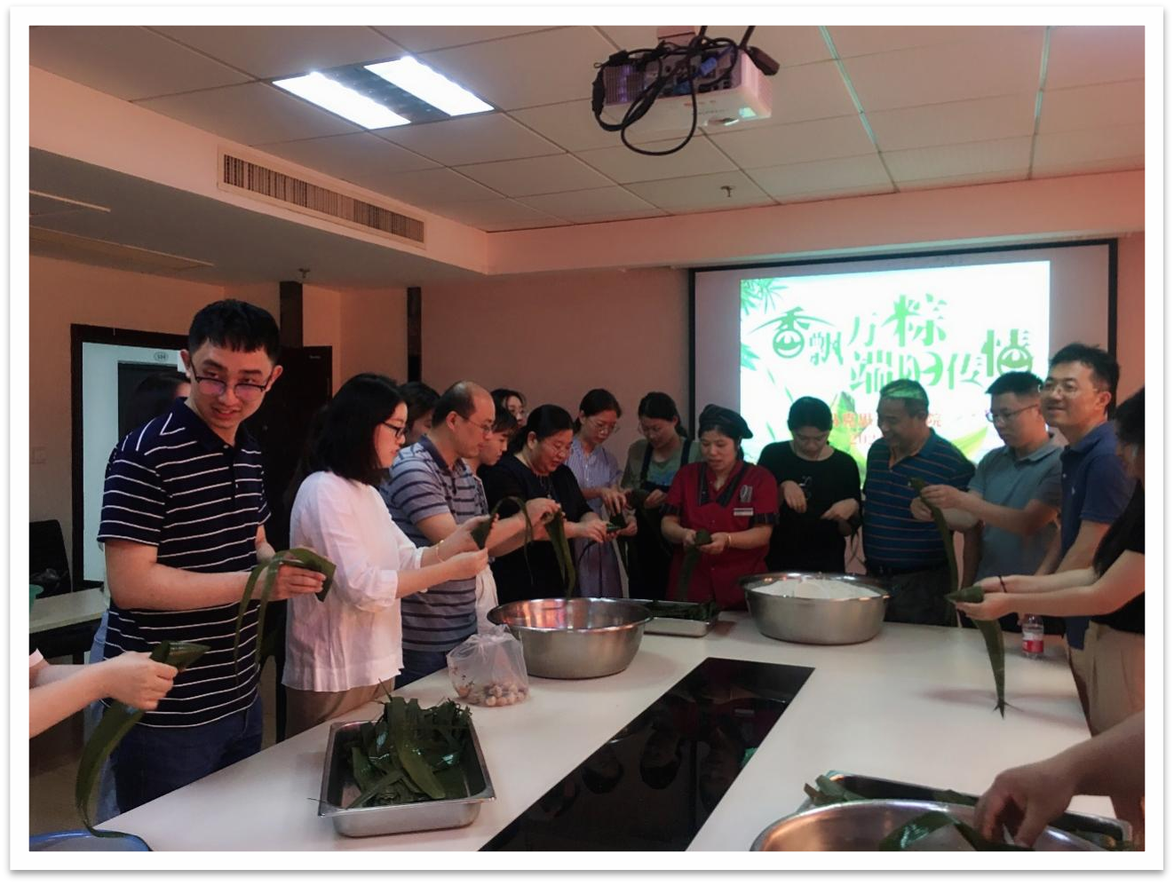 6月9日下午,18porn 师生在学院303会议室共同参加端午节主题活动,亲自动手包粽子,弘扬中华传统文化。本次活动由18porn 工会和团总支共同筹办,学校教工食堂的大力支持,所需食材均由食堂提供。