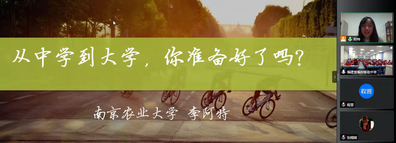 11月15日下午,18porn 与福建省格致中学开展共建交流,并邀请我校生命科学学院党委副书记、副教授李阿特作《从中学到大学,你准备好了吗》专题讲座。讲座由教务处李怡副主任主持,2019级高三实验班的60名优秀学生参加。