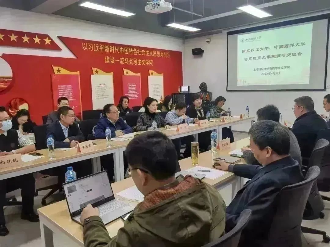 下午,调研组赴上海财经大学18porn ,与上海财经大学马院、中国海洋大学马院开展第二场交流活动。调研组受到了上海财经大学马院党委书记曹东勃、院长章益国等同行的热情接待。三所马院分别介绍了历史概况、学院现状和未来规划等,并就学院党的建设工作、教学评价机制与绩效考核制度进行了深入交流和讨论。