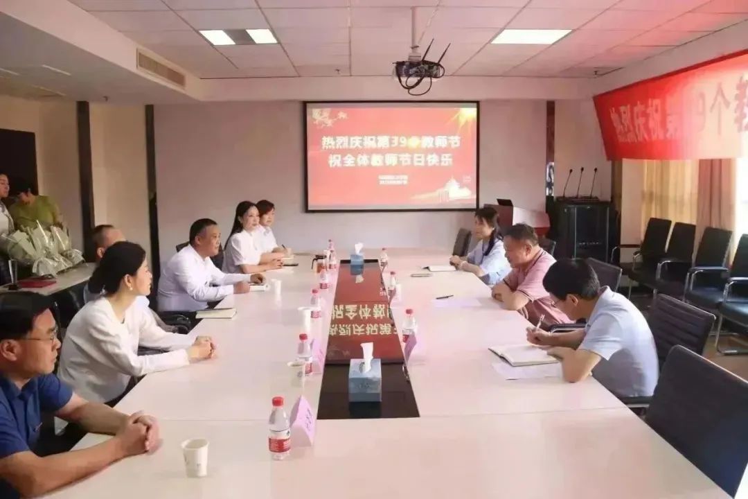 2023年9月7日,在全国第39个教师节即将到来之际,校党委副书记、纪委书记吴荣顺一行来到学院慰问教师,党委宣传部副部长、教师工作部副部长屈勇,党委宣传部校园文化建设事务主管崔滢陪同。学院班子成员,教师代表王建光、梁玉泉、高媛参加座谈交流。