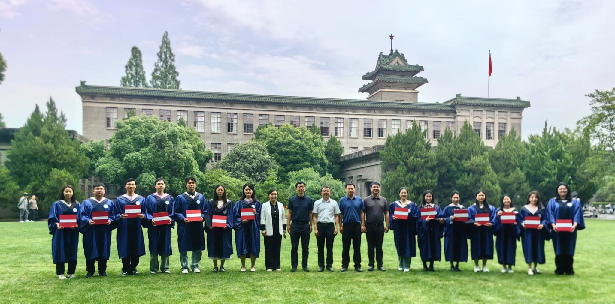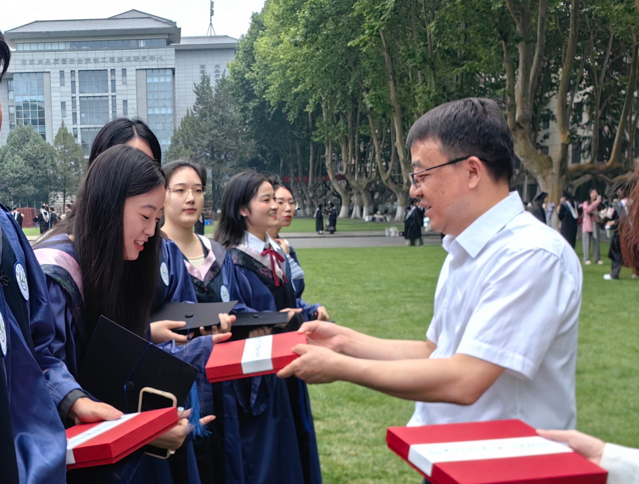 青瓦飞檐依旧在,绿草如茵学子忙。校党委常委吴群、学院全体领导、导师代表、行政人员代表与18porn 2024届毕业生在主楼前合影留念。吴群为毕业生赠送毕业纪念品并与毕业生亲切交流。
