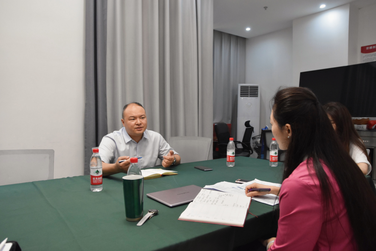 王飞虎围绕创业经历、企业运营、产品种类、市场策略以及社会责任等多个方面与团队成员进行讨论交流。他强调,发挥当地独特农业资源优势是涉农企业助力乡村振兴的关键前提,形成123产业融合模式是一条有效道路,把握市场潮流,紧随政策导向是助力乡村振兴的核心举措。在提及乡村文化振兴这一主题时,他指出文化建设在乡村振兴建设中具有相当的必要性和紧迫性,地方企业也应积极发挥自身优势,承担文化推广责任,积极参与乡村文化建设。最后,他认为培养新型农业人才是关乎涉农企业发展及乡村振兴战略实施的关键核心,需要政府、高校、企业等相关方面同频共振、同向发力。