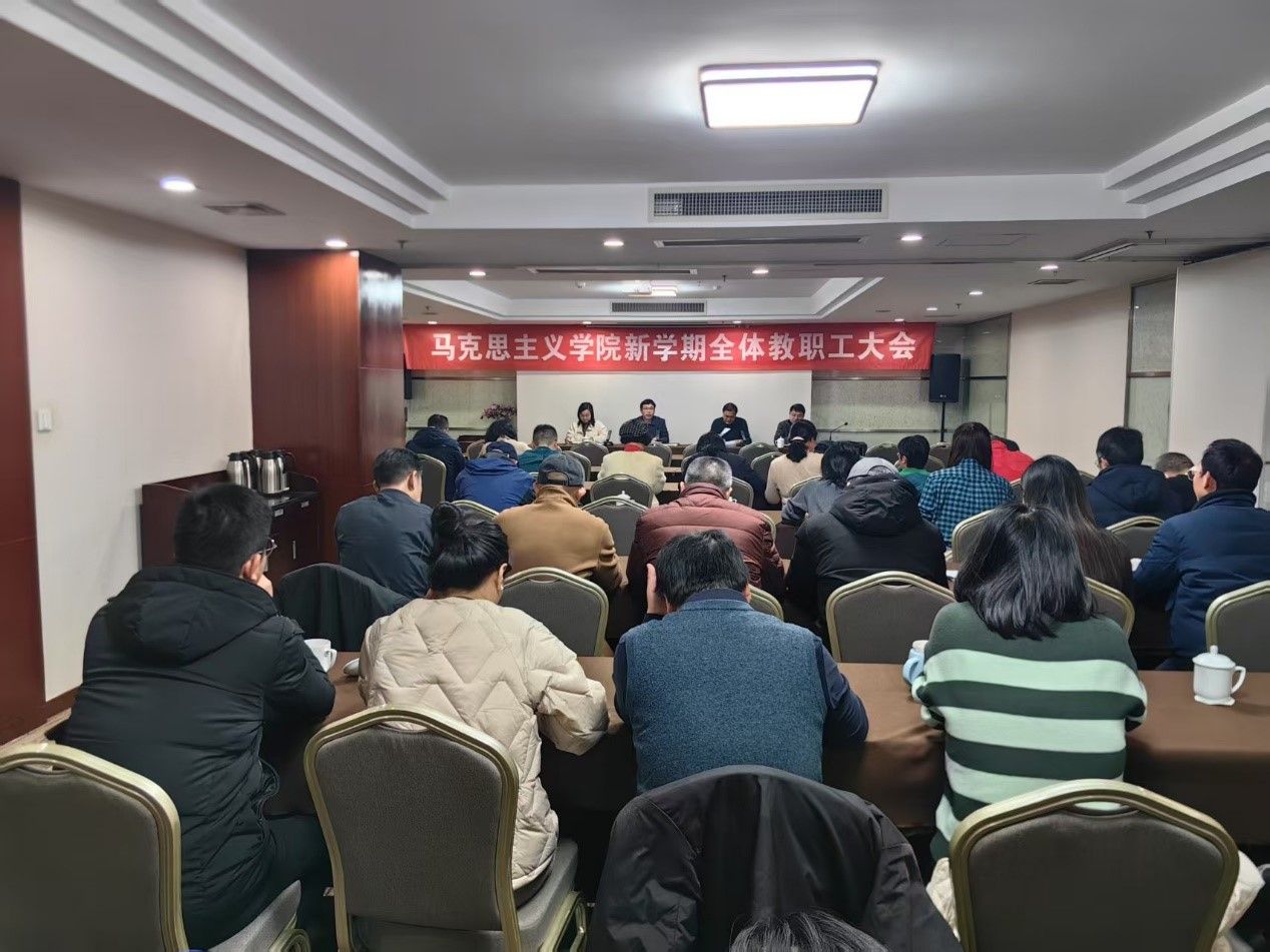 院长付坚强总结过去一年工作成果。他强调,全体教职工要坚定实现学院高质量发展的信心。信心来源于党和国家对马院和思政课建设高度重视;来源于历代马院人的共同努力,为学院建设奠定了越来越厚实的基础。同时,他分析了学院发展中存在困难和问题,提出要加强队伍人才建设,加大力度引进高层次人才,提升学科影响力,要完善集体备课制度,提升教学质量,鼓励支持教师开展科研工作,推动科研成果实现质和量的突破。