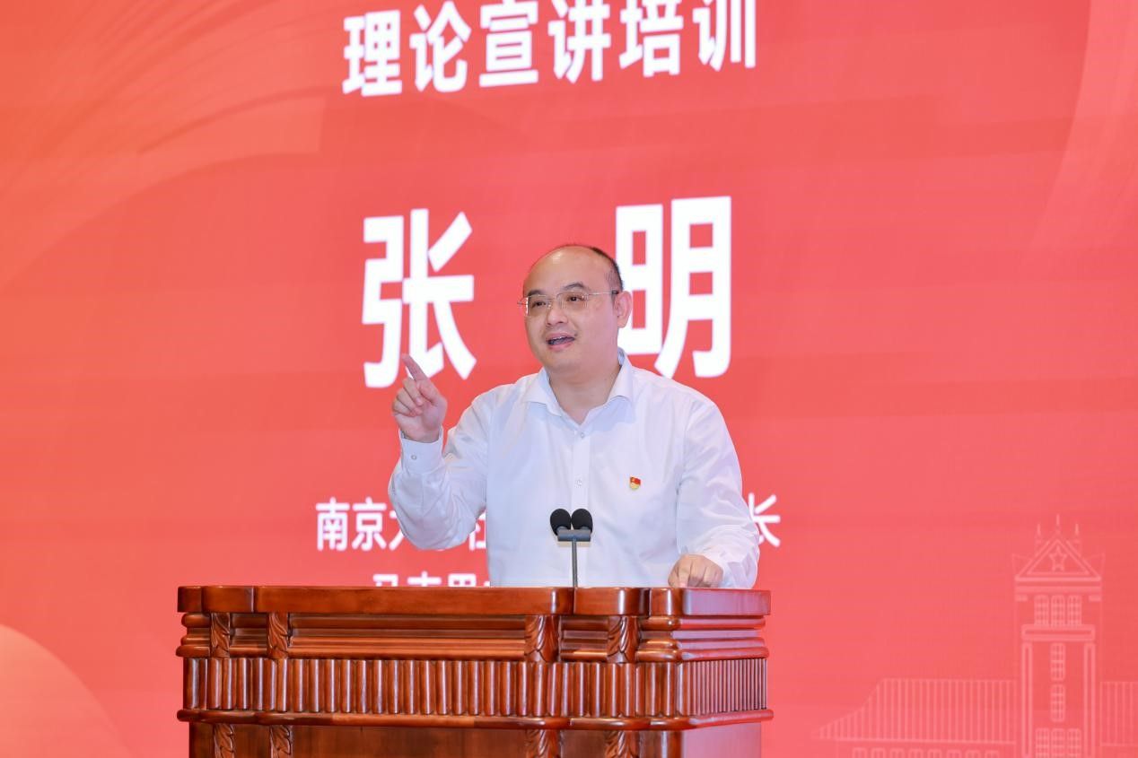 在联学联讲活动中,南京大学社会科学处副处长、18porn 教授张明老师以《如何上好一节党课》为题为现场代表进行理论宣讲培训,他从“党课是什么”“党课讲什么”“怎么讲党课”三个主题与大家进行深入交流,张明教授的讲授深入浅出、内容丰富,以生动鲜活的例子让在场青年学生感受到了理论宣传的魅力。