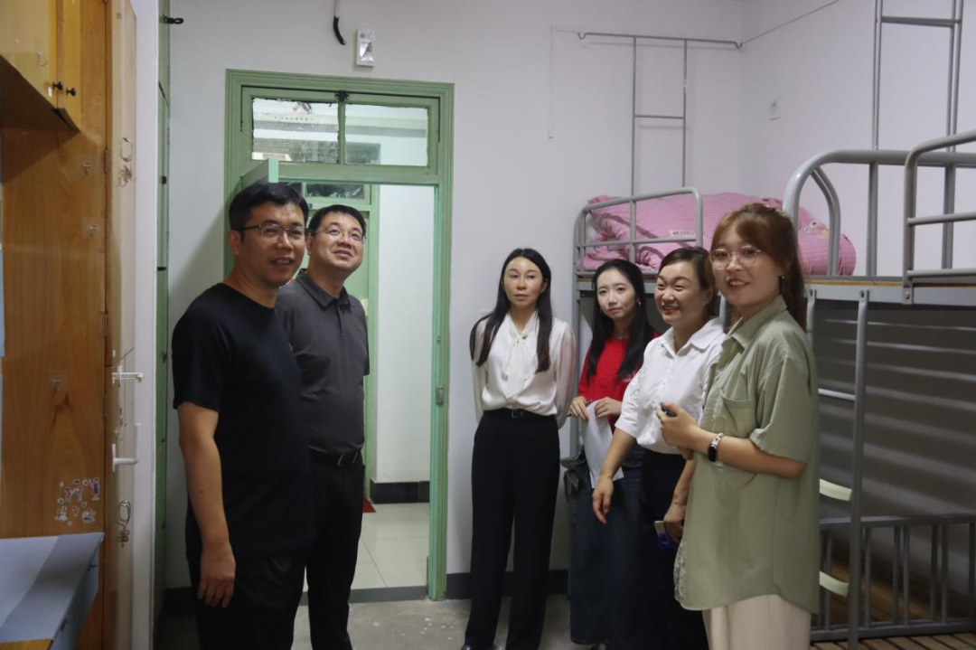 学院班子成员和辅导员走进新生宿舍,了解新生住宿和生活情况,并与新生进行亲切交谈。