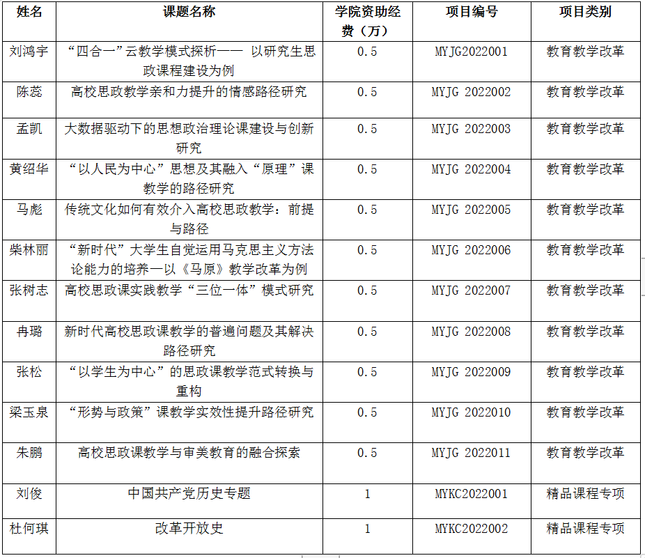 根据《关于组织申报2022年度18porn 教育教学改革项目的通知》和《关于组织申报2022年度18porn 精品课程专项建设项目的通知》要求,经专家匿名评审,学院拟对以下项目给予立项资助,现予以公示如下: