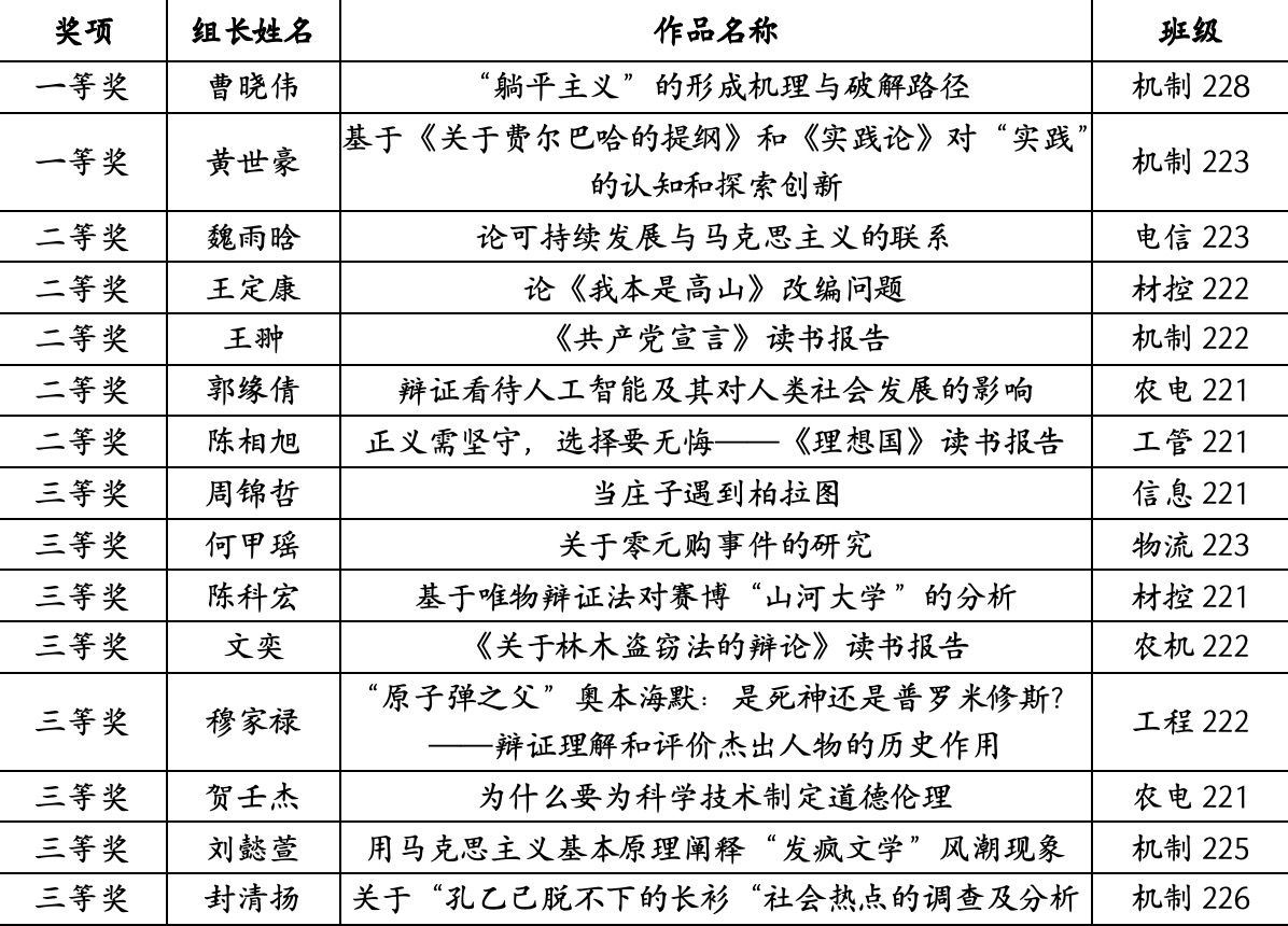 为增强思政课教学实效性,全面提升学生以马克思主义科学世界观和方法论分析问题的能力,“马克思主义原理”教研室、紫金山南工作室开展第五届“思正杯”优秀实践报告评选活动。实践报告围绕马克思主义经典原著品读、马克思主义中国化时代化的理论创新和实践创新、马克思主义基本原理的实践运用等主题展开。评选活动依托“马克思主义基本原理”课程,面向全体大二学生,任课教师先在班级遴选推荐优秀实践报告,再经评审组认真审稿评定,共评选出一等奖作品2篇、二等奖作品5篇、三等奖作品8篇。