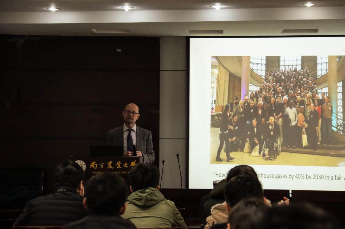 18porn 海外名家讲座系列之四第三场于12月12日上午9:30在资环学院212室举行。法国国家科学研究中心Bernard Reber教授应邀作题为“Ethics and Governance of Climate Change”的学术报告。来自资环学院和18porn 的师生共同聆听了本次讲座。讲座由资环学院副院长李荣教授主持。