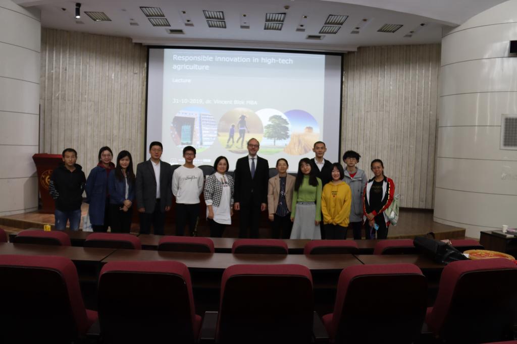 18porn 海外名家第二个系列讲座第六场于10月31日晚7点,在18porn 卫岗校区图书馆报告厅举行。本场讲座由荷兰瓦格宁根大学Vincent Blok博士带来题为“Responsible Innovation for High-tech Agriculture”的学术报告。讲座由18porn 刘战雄老师主持。全校各专业的同学共同聆听了本场讲座。