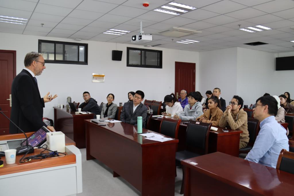 现场学术氛围浓厚,来自经济管理学院的博士生也和Blok博士进行了互动。Blok的学术报告既有科学思维的深度,又有渊博理论的广度。从个人到智慧农业再到工业,由点及面的拓展我们的知识面。本场讲座在师生们与Vincent Blok博士的热烈讨论中圆满结束,Vincent Blok博士就师生们提出的问题给了满意的解答,极大开阔了师生们的学术视野。