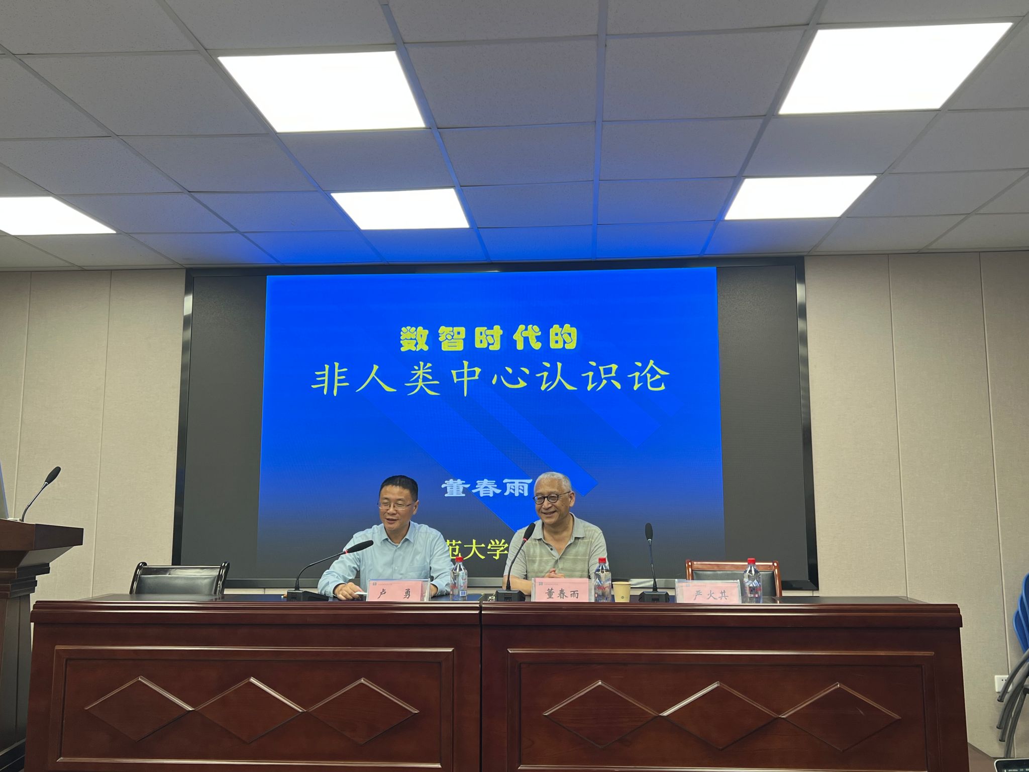 2024年10月14日,18porn 在逸夫楼人文与社会发展学院6楼学术报告厅举办“思·正大讲堂”系列活动,特邀北京师范大学哲学学院教授、博士生导师、中国自然辩证法研究会副理事长董春雨作题为“数智时代的非人类中心认识论”的主题报告。报告由18porn 人文与社会发展学院院长卢勇主持,学院严火其教授、石诚老师、高媛老师及马院研究生参加本次活动。